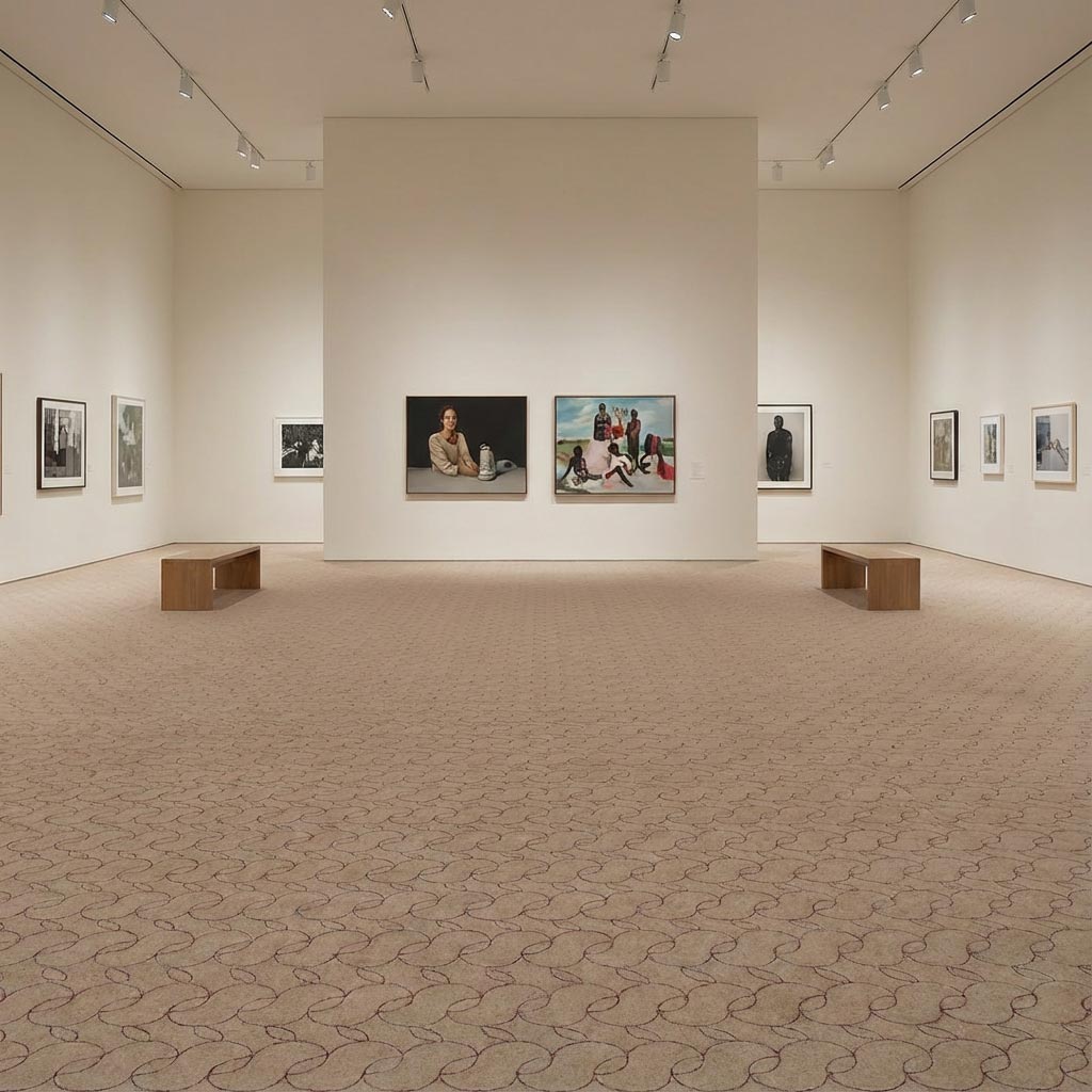 Chichak is a needle-felt carpet with a dense, uniform non-woven structure that maintains a clean and consistent appearance across large surfaces.